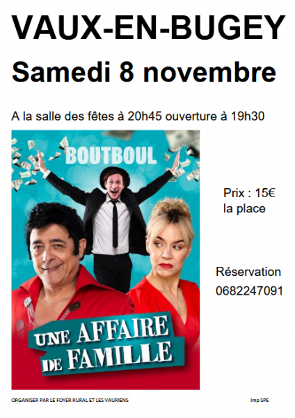 "Les Boutboul : une affaire de famille" samedi 8 novembre à 20h45 (ouverture des portes à 19h30) à la salle des fêtes.